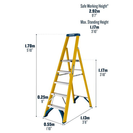 GPC Climb It Fibreglass Platform Step Ladder - 5 Tread