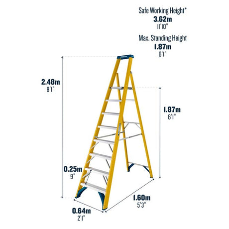 GPC Climb It Fibreglass Platform Step Ladder - 8 Tread