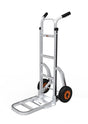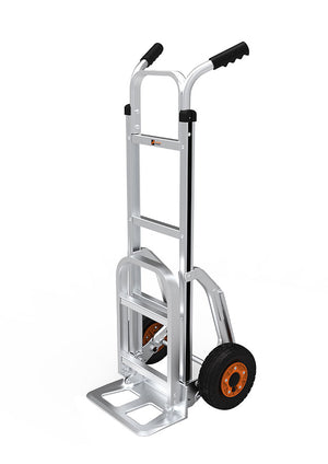 The G1827P Centaur Sack Truck is manufacured in aluminium giving the product lightweight yet robust qualities. This sack truck is ideal for industrial and heavy duty applications as it allows a 200 kg capacity. The G1827P gives the user the option to use this sack truck as a standard toe or to extend the toe for larger products. The 250 mm REACH complient wheels give stability when moving the sack truck on uneven ground and rough terrain. This model comes with sliders to assist when moving items up steps, these sliders can also be easily removed should this be required. The solid toe allows users to move smaller items without getting stuck in the plate.