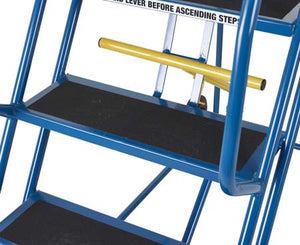 The Climb-It essentials warehouse steps are one of few mobile steps that are manufactured here in the UK. Boasting an impressive lead time, wide platform size and a 150kg capacity this range of warehouse steps are practical, safe and secure. The safety features on the AAS range doesn't stop there, with wide profile treads and a handrail that boasts a 955m height above the platform. The braking system position on these mobile warehouse steps ensure that when the step is not locked it cannot be climbed.