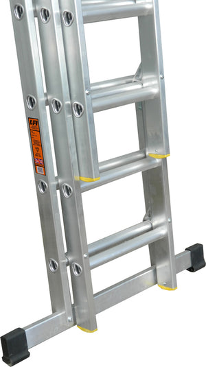 This 3 x 15 triple section extension ladder is designed to conform to the new EN131 standards, this triple extension ladder from LFI is perfect for work in trade and construction. This triple extension ladder is certified to EN131:Professional which is the replacement of Class 1. Built with the same traditional quality this extension ladder is fitted with D Shaped and twist-proof rungs as well as rigid box section stiles, giving the user the maximum feeling of safety and stability. Under new regulations all ladders over 3m must have a stabiliser bar attached, this model comes complete with a stabiliser bar which is easy to fit and remove if needed for transportation.