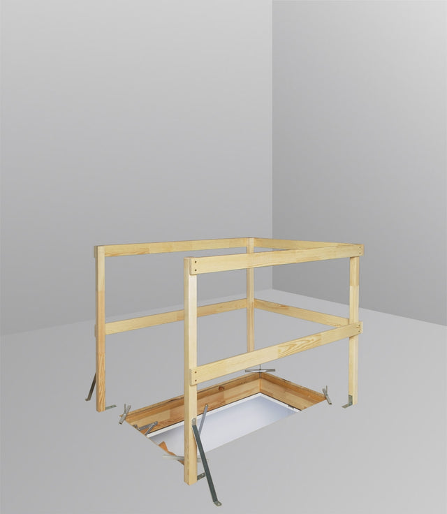 The Loft Balustrade is made of pine wood, protects the ceiling opening in the attic and makes it easier and safer to descend the ladder. The LXB-U is installed directly to the loft floor and is strengthened with flat bars. Due to the generous size it can be applied to most size of loft ladder without cutting its horizontal bars.