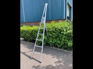 This 3m fruit picking ladder from Chase is manufactured to an industrial strength and have a maximum load of 175kg. The aluminium construction of this tripod ladder makes it robust, heavy duty but also very lightweight at only 8kg. With splayed front ladder sections and deep serrated rungs this tripod ladder is perfect for trimming hedges, as well as other work around the garden. This range also comes with a ground spike to ensure maximum safety when working on soft ground.