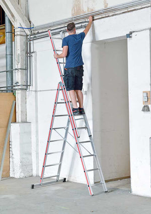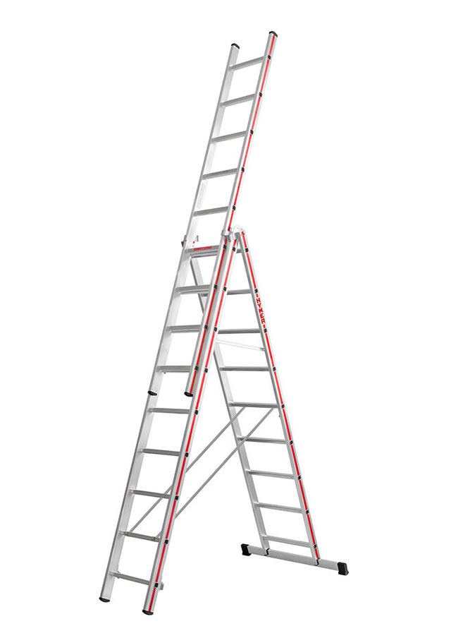 - Versatile for use as a leaning, extension, step ladder, free standing and stairwell ladder