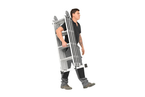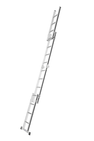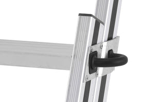 The 70069 multi purpose ladder from Hymer is certified to EN131 and has a unique innovative design. Manufactured in Germany with a 5 year guarantee this combination ladder can be used as both a leaning ladder or step ladder, the steel hinged clamps make it easy to transform one ladder into the other securely. With the telescopic design, this combi ladder is very compact when not in use making it perfect for storage and transportation for trade use. The telescoping design also makes it possible to use as a stairway ladder on raised surfaces.