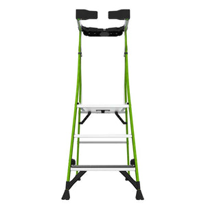 The 4 tread Little Giant Fortress gives users a working height of 1.1m and allows them to confidently work safer for longer durations with thanks to it's large working platform which is enclosed to keep the user in, preventing falls from the top of the ladder. The gates on this platform step ladder self close for added security, the Little Giant Fortress really does have it all, a fibreglass construction to work in hazardous environments and the patented ground cue which is an audible click on the bottom rung of the ladder to prevent foot misplacement when descending, over 20% of ladder accidents occur with users miscalculating when stepping off the bottom step, the ground cue prevents this occurring. The Little Giant Fortress podium step ladder also has an innovative tool tray to make working at height easier, the most versatile tool tray yet with slots, holes, hooks and even a closable container.