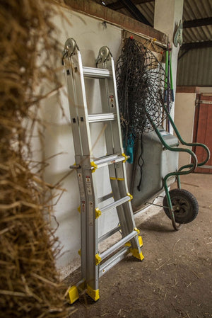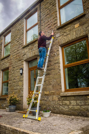 Suitable for both professional and domestic use this combination ladder has compact folded dimensions, is easy to operate and can be transformed from a step ladder into an extension ladder or stairway ladder with minimal ease.