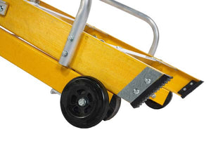 This Range of fibreglass wide step ladder was originally designed with the hire market in mind, so they have been engineered to exacting standards with improved stability over standard stepladders. To this end this ladder is manufactured using a multi directional thread, which increases the strength in the composite. Safety is always the first priority when using a ladder. One of the major advantages of fibreglass is the fact that it is non-conductive, and can be used around electricity. These ladders are ideal for any trade or industrial uses. the perfect light weight insulated mobile platform, suitable for a multitude of jobs.