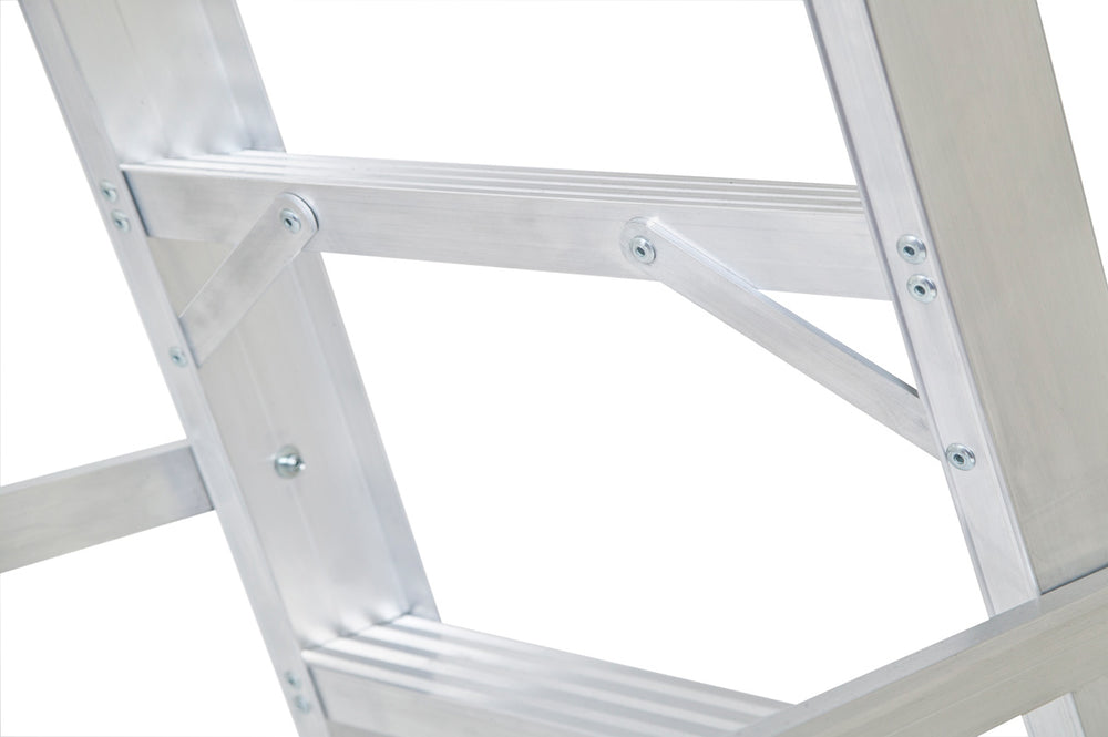The Lyte NESS7M has recently undergone design changes to increase the distance between each tread bringing them in line with similar sizes on the market. This design change also includes an addition of a magnetic tool tray, low-carbon aluminium treads and an easier repairable design.Lightweight and easy to carry, these swingback stepladders are ideal for professional trade use and are manufactured in the UK.