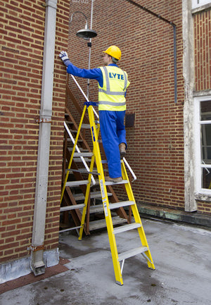 Offering a lengthy lifespan and excellent quality, the new Trade Glassfibre Swingback Stepladder range is designed to withstand light trade and trade use and is non-conductive to 30,000 volts.