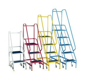 The Steptek narrow aisle warehouse steps from Redhill offers a platform height of 1.25m and are designed for use in narrow aisles where space is limited. These robust narrow aisle units have spring loaded castors and therefore this allows the feet to lower to the ground when the warehouse step has weight applied to it. The narrow aisle warehouse steps come in a number of colour options and can either be manufactured with rubber or anti-slip treads.