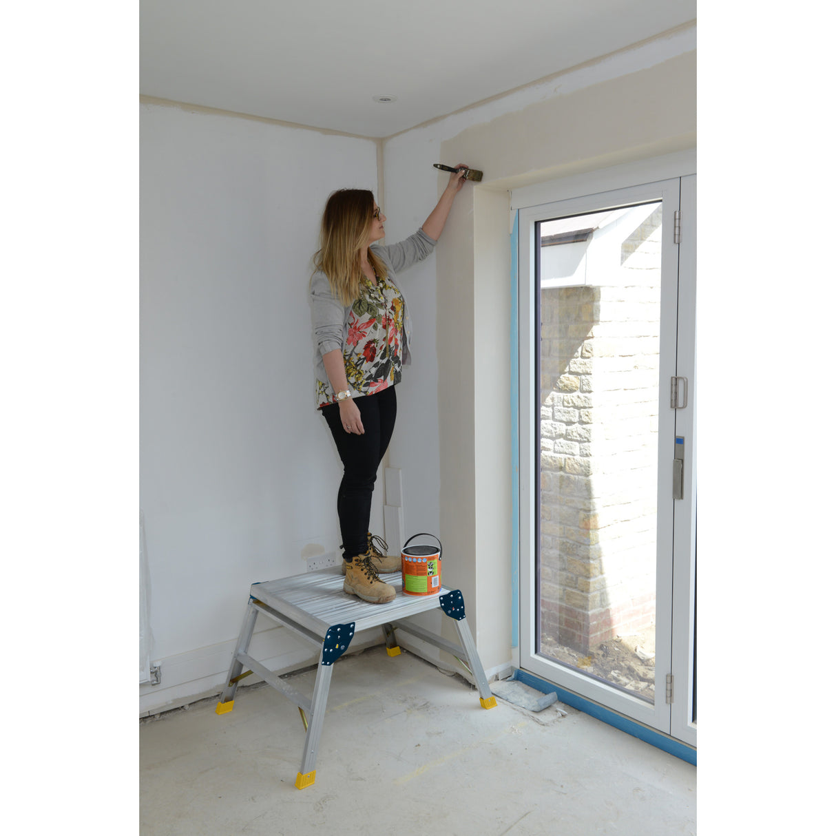 The Odd Job 600 is a tough trade low level work platform with a 600 x 600mm square platform, which is the preferred platform size for low level platforms when working on sites. Constructed of aluminium for easy handling and providing an impressive platform size of 600 x 600 mm. Ideal for most trades who need a solid, stable platform to work just off the ground. Typically known as the Youngman odd job, this work platform has been re-branded under the Werner brand and offers the same strength and unique features.