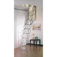Manufactured from pressed steel and fully galvanised, these heavy duty concertina style ladders can be used safely in the most demanding of situations and will easily cope with frequent use. They have an integral steel frame, which lines the hatch opening, for greater strength and durability. The supplied MDF hatch is fully spring counter-balanced making the ladder mechanism extremely smooth and easy to use. Since the ladder retracts to store on its own hatch it takes up minimal storage space. The ladder is ideally suited for both domestic and commercial use and is perfect for smaller openings where space is restricted. A Free pole is supplied with the ladders.