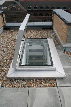 This range of roof access hatches come at a standard size and shape. These are standard hatches and are suitable for a range of roof types including pitched roofs. As you can see in the image this hatch is manually operated and is manufactured from 2mm Aluminium, which is suitable for 95% of circumstances and environments. All standard roof hatches come with its own upstand at no additional cost. All