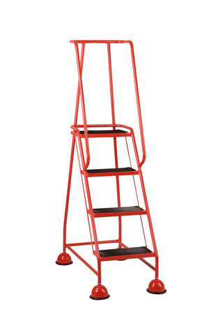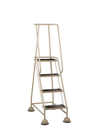 Fitted with dome covered spring loaded, 50 mm diameter swivel castors which retract when weigh is applied to the steps, giving firm contact with the floor. The dome covers have a double rolled bottom edge together with a protective cover strip, giving a neat appearance and reasonable protections to carpets and other floor surfaces.