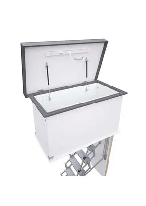 The Supreme Flat Roof Hatch is a complete ladder and hatch kit that has been designed in a concertina style to save space when access to a roof is required on commercial and industrial products. Suitable for heights upto 3.09m in a number of aperture sizes, this heavy duty concertina ladder is manufactured from die cast aluminium making is lightweight yet durable. The hatch on this flat roof access ladder has a case height of 750 mm and has a 62 mm thick sandwich construction insulated trapdoor, with a U-value of 0.37 W/m K. ideal for smaller spaces, the heavy duty spring mechanism allows you to raise and lower the loft ladder with a minimum of effort.