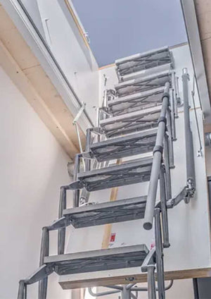 - Space-saving retractable loft ladder for small ceiling openings.