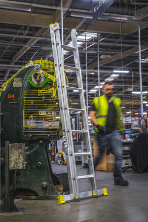 The Trade Double Extension ladder has been designed for trade use, perfect for light use. This EN131 Professional double section extension ladder has two sections and 11 rungs per section. This extension ladder from Lyte Ladders comes fitted with a stabiliser bar for added security and comfortable D Shaped rungs. Made in Britain and has a maximum load of 150kg.