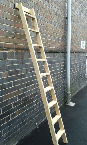 Manufactured in the UK these timber shelf ladders are also known as library ladders and can be used to access bunk beds. They are made from high grade solid North American softwood and the shelf ladders are sturdily manufactured with galvanised mild steel tie-rods fitted as standard to add strength to the ladder.