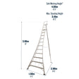 Designed with landscapers, agriculture and gardening enthusiasts alike. This 11 tread tripod ladder is constructed in lightweight aluminium and has three telescopic legs to make it adjustable to suit the task in hand. This tripod ladder is ideal to setup on slopes, steps, stairwells and rough uneven terrain. The 11 tread model of the Werner tripod ladder has a ten year guarantee and a safe working height of 4.85m.