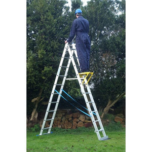 The Zarges Skymaster promises to provide you with unrivalled versatility, This 3-part combination ladder is six ladders in one! The Skymaster can be used as a free-standing ladder (As shown in the image) step, trestle step, single, double and triple extension ladder, the ladder can even be used as a stairway ladder. This multipurpose ladder provides the user with flexibility, durability and is easy to use and therefore it is no surprise that it is one of the best-selling ladders on the market.