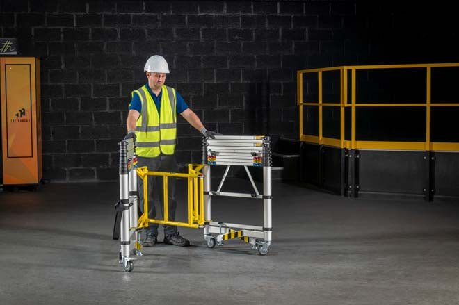 The TT02 is a an efficient and lower-cost alternative to other low level access platforms. With seven different platform heights from 0.33 to 2.0m and working heights from 2.30 to 4.0m the design of the Teletower allows the platform to be suitable for a number of jobs should you be on site or working on a long duration DIY task. Fully erected in less than 3 minutes this telescopic scaffold tower saves times and effort, previously wasted in unloading and assembling traditional scaffold access towers.