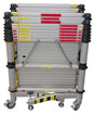 Stabiliser legs with 5 optional positions and lockable castors; as well as a large folding platform (1.40 x 0.70 metres) with a climb-through hatch have been included in the design of this superb tower. The platform stabilisers are stowed on the underside of the platform and must be deployed when the platform working height is at or is greater than 1.5m. Platform support braces and integral advanced guardrails offer high safety levels by reducing errors during the erection process. The Zarges Teletower comes with the reassurance of conforming to EN 1004.