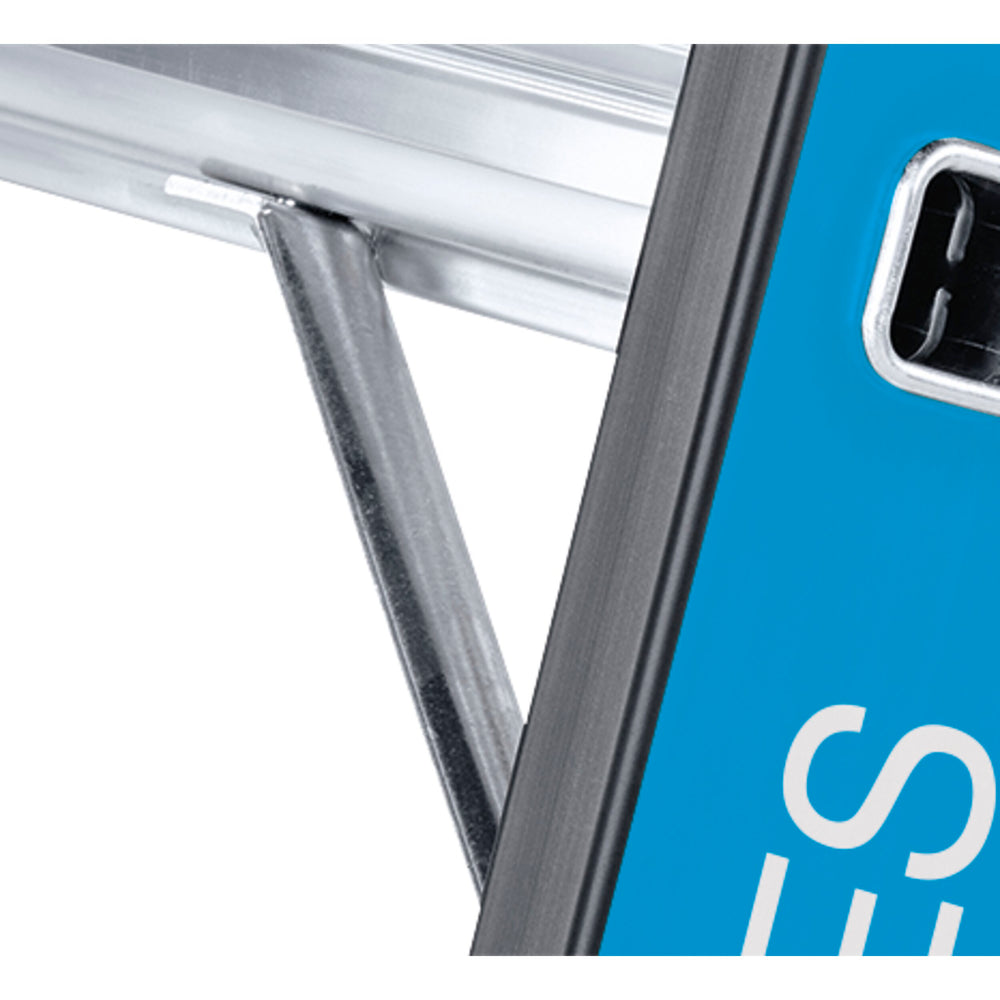 The Zarges Megastep S is a heavy duty step ladder with a high load capacity of 150kg and is one of the strongest ladders on the market. Previously known as the Z600 range, this Zarges range of industrial step ladders comply to EN131 Professional. Featuring black, wear-resistant anodised stiles with ultra-strong Zarges flanges connecting the extruded aluminium rungs to the stiles.