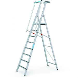 The Zarges Z600 Zap is a perfect solution for industrial environments, used in warehouses and factories. With a high 1m guardrail, these ZAP Master Steps have 8 treads and a platform height of 2.11m. The platform size on this range of step ladders are exceptional stable and safe, with an enclosed platform and 80mm deep treads,