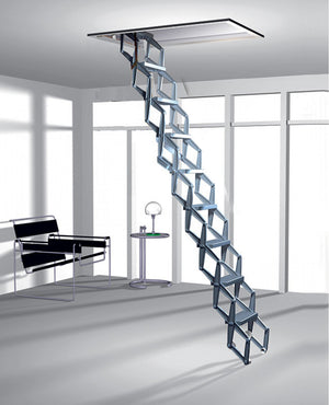 The Zig Zag Concertina Loft Ladder is manufactured to EN14975 (DN4570) from die cast aluminium with two heavy duty counter-balanced springs incorporated into pivot brackets. With a huge maximum load of 200 kg per tread and a maximum ladder load of 500 kg/m2, it is a recommended second means of escape from plant rooms and industrial environments.